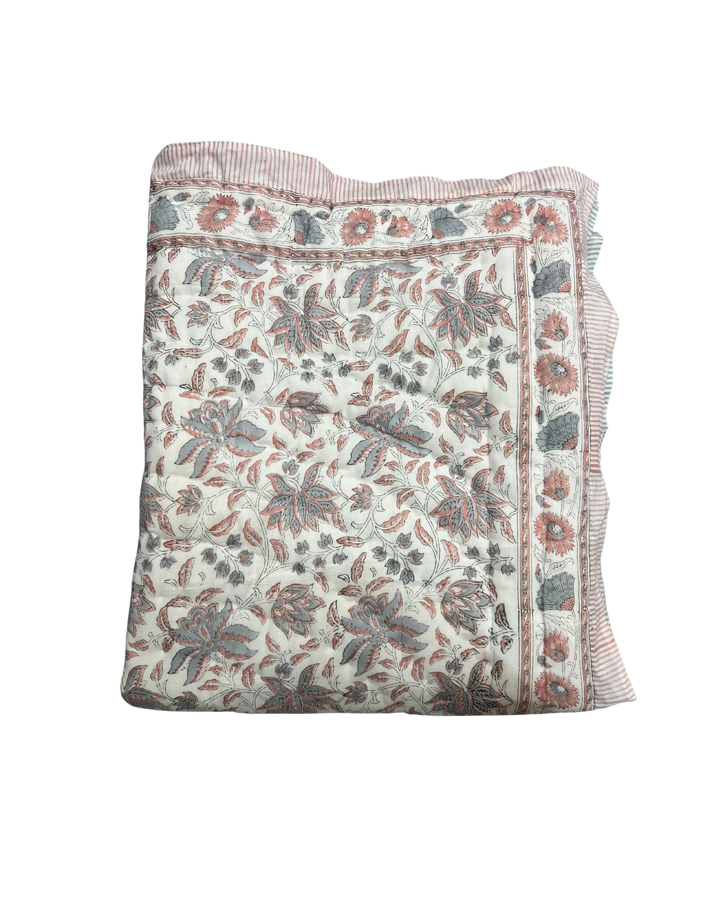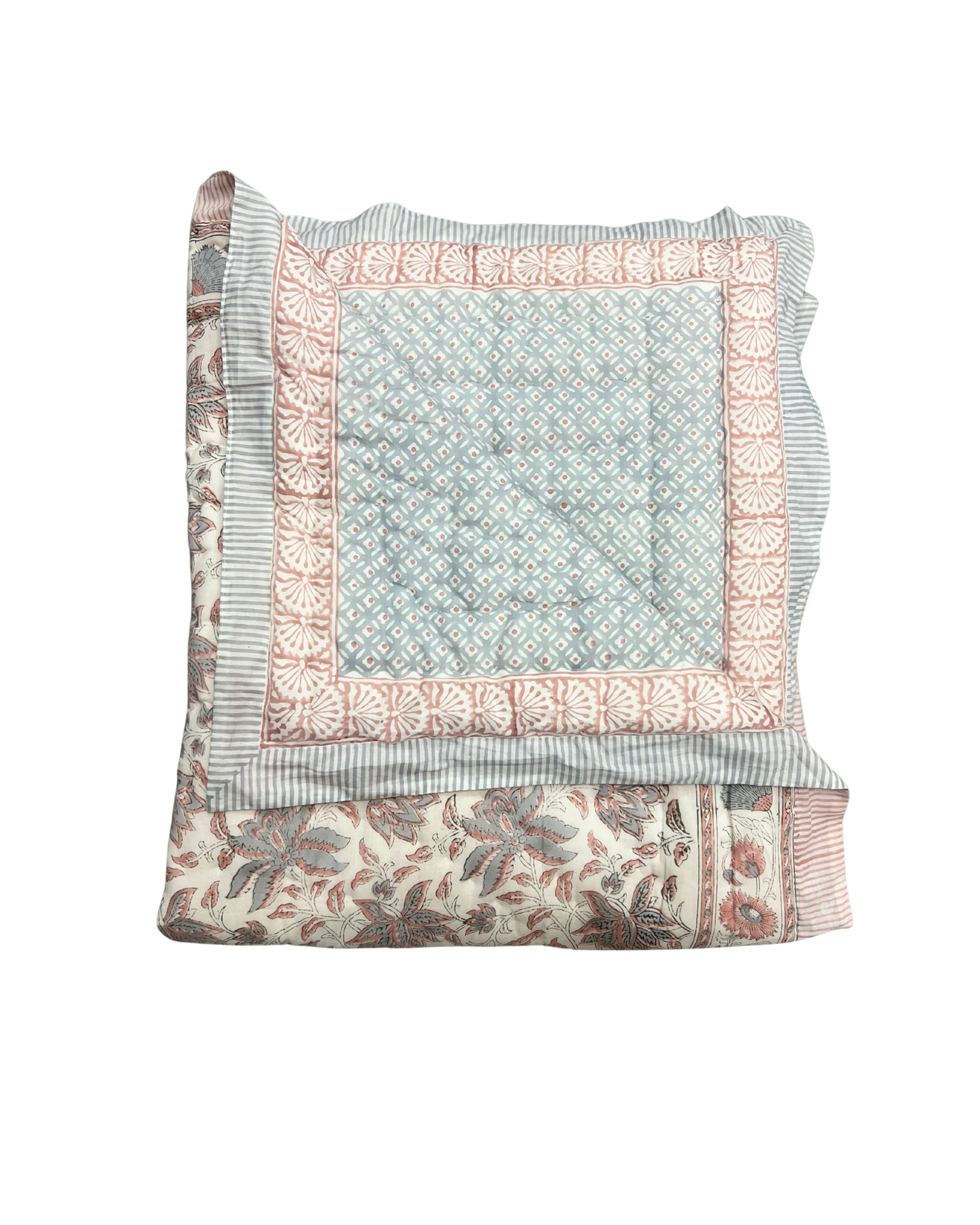 Jaipur Chintz reversible quilted Throw In vintage blue  & dusty pink - Dilli Grey