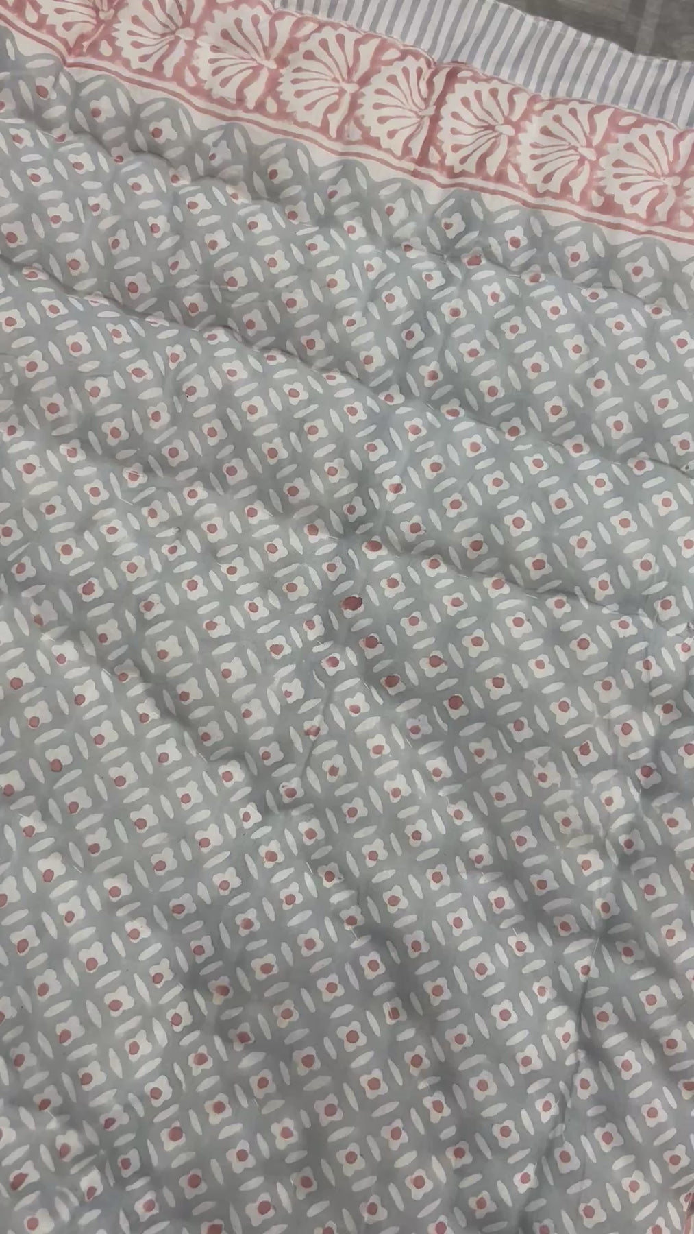 Jaipur Chintz reversible quilted Throw In vintage blue  & dusty pink