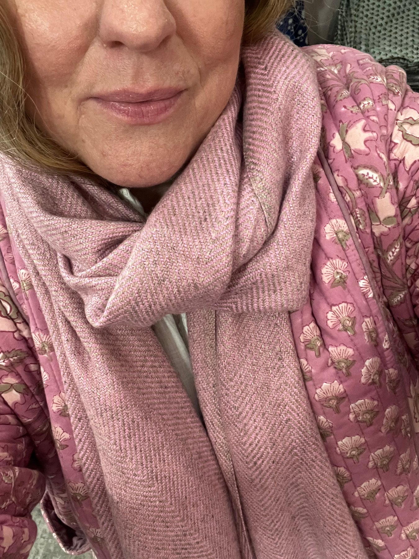 We have a new winter range of consciously sourced, 100% cashmere scarves. They are super-sized and great for really cocooning you in their soft, snuggly embrace. The perfect luxe gift in a new super luxe tone of taupe and baby pink chevron design, which pairs beautifully with camels and neutral tones.