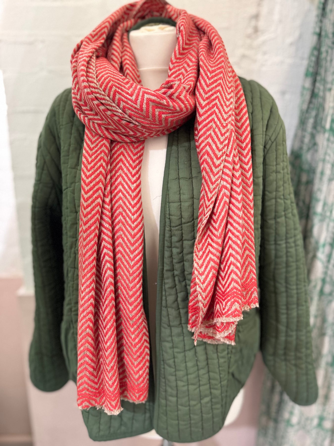 *NEW COLOUR* We have a new winter range of consciously sourced, 100% cashmere scarves. They are super-sized and great for really cocooning you in their soft, snuggly embrace. The perfect luxe gift in a new super luxe tone of taupe and orange chevron design, which pairs beautifully with camels, khakis and other neutral tones.