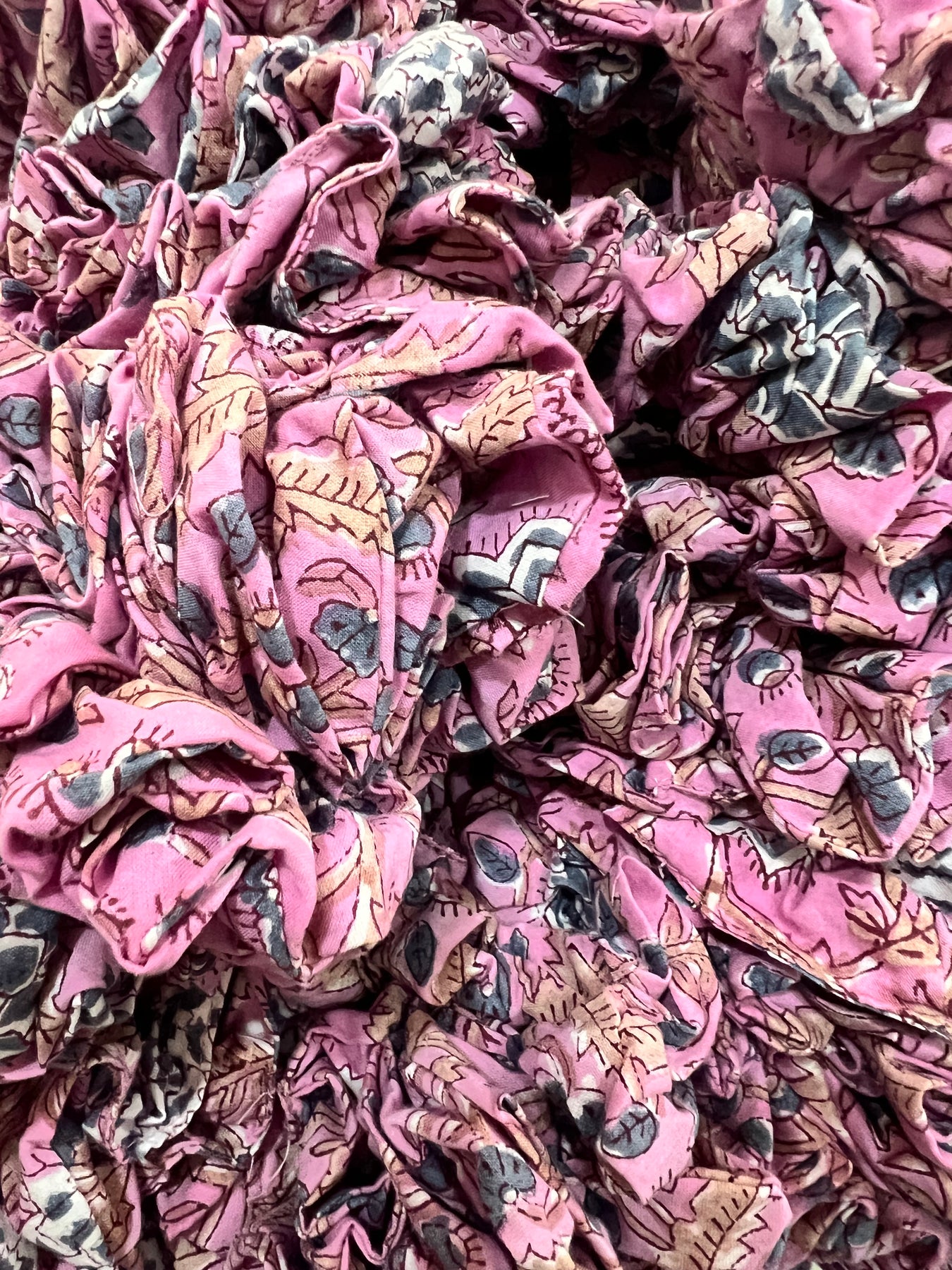 Our block-print scrunchies are hand-printed on 100% organic cotton, created as part of our zero-waste initiative using the remnants from our quilts and cushion production.